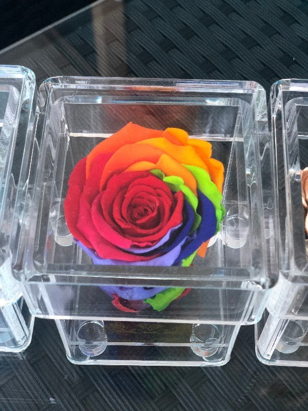 Box size: 3″x 3″ Single forever rose last years in acrylic box. Choose your rose...
