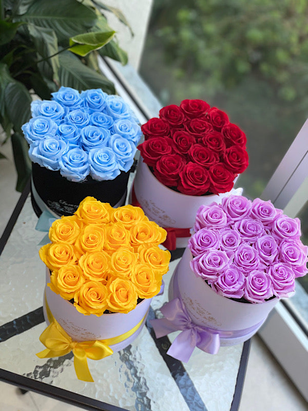 Box size: 8”x 8” London 12-14 eternal roses in round box. You can choose...