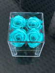 4 preserved roses any color in square acrylic box. You can choose any rose color