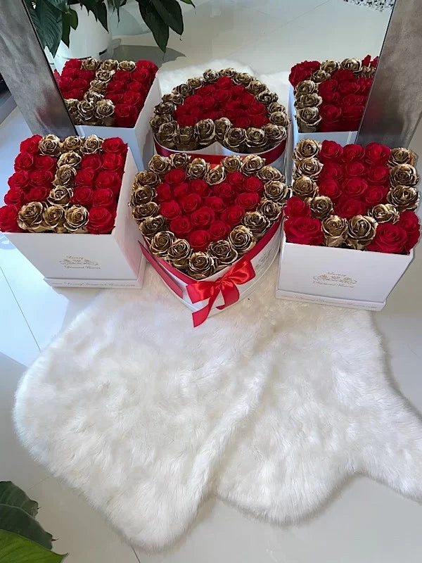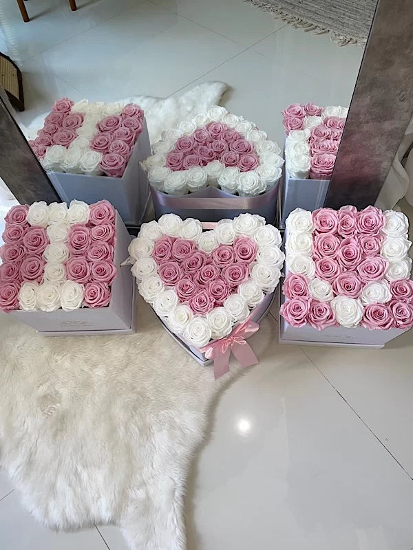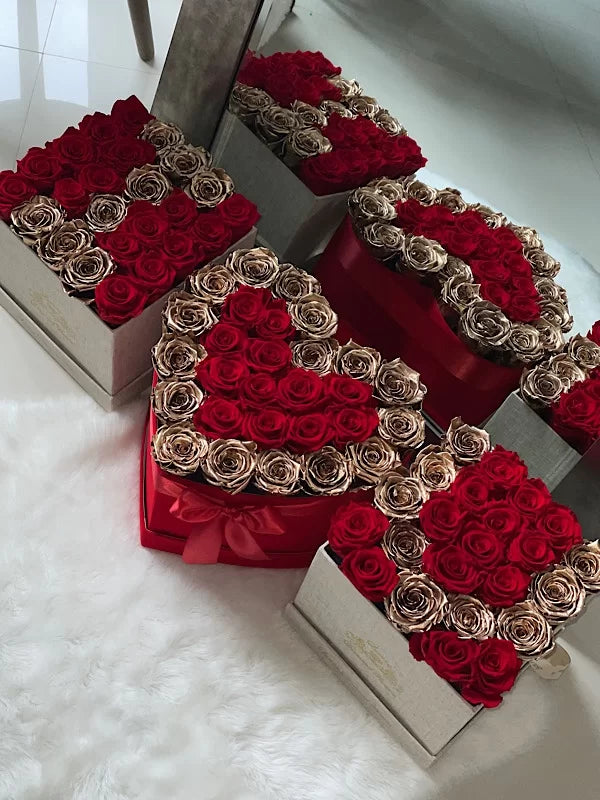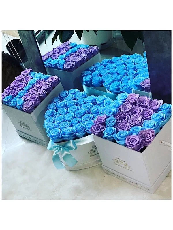 Up to 85 preserved roses ( 2 Square boxes with 25 roses each and 1 Heart box with up to 33 roses ) will last years.