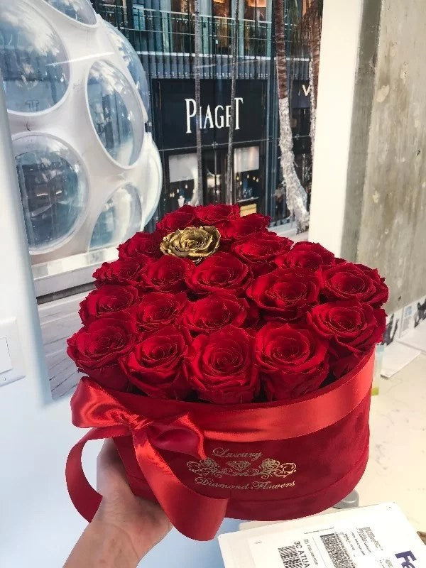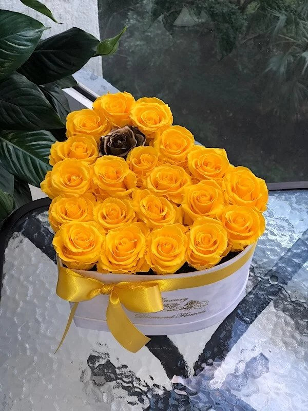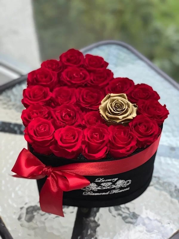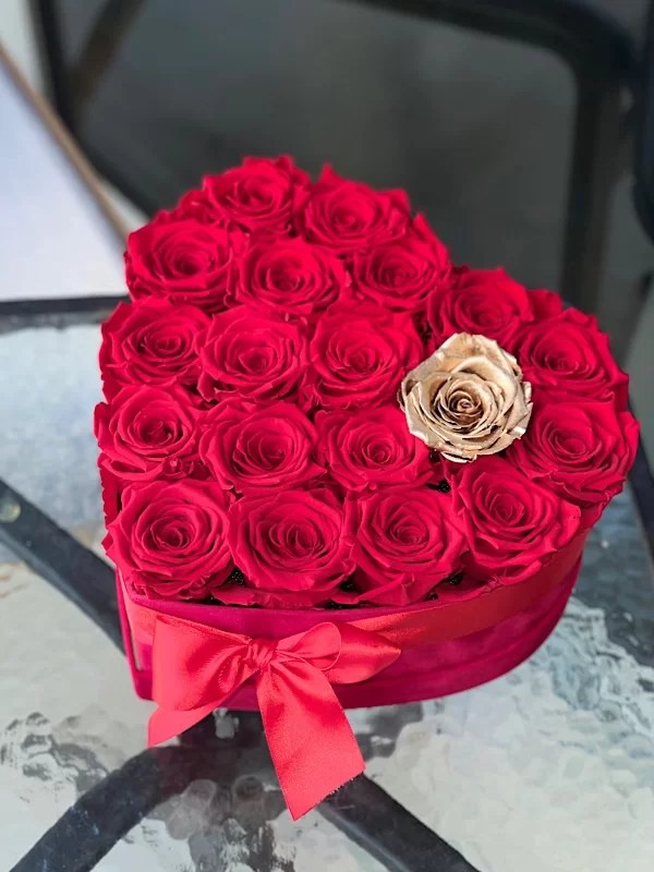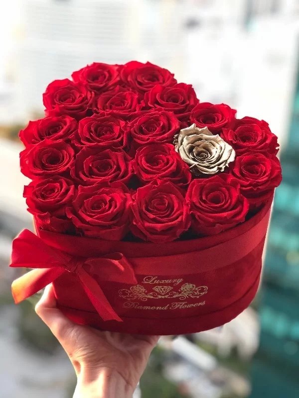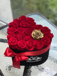 19 eternal roses with 1 gold rose in Velvet heart shape box will last years