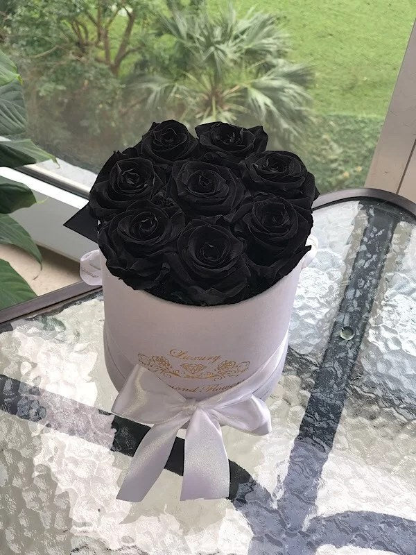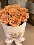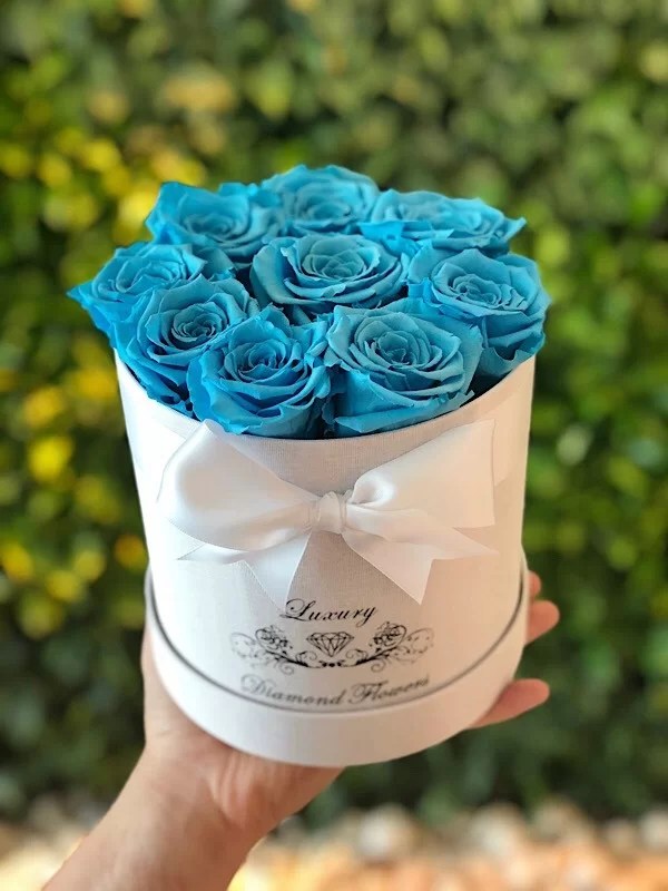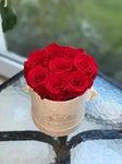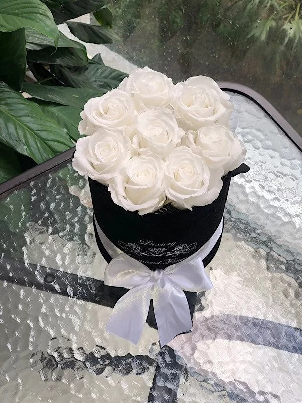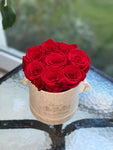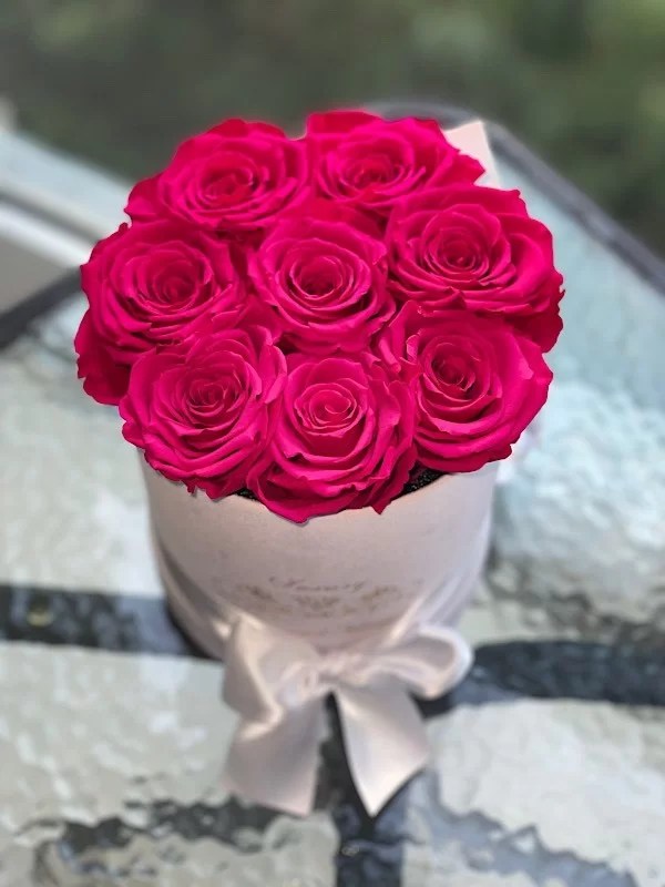 Best flowers Miami is offering Manhattan preserved roses flower box same day delivery in all South Florida. Manhattan is up to 9 preserved roses that last years in round box.