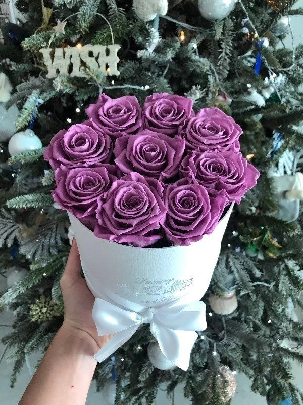 8-9 preserved roses will last years in round box. You can choose any rose color
