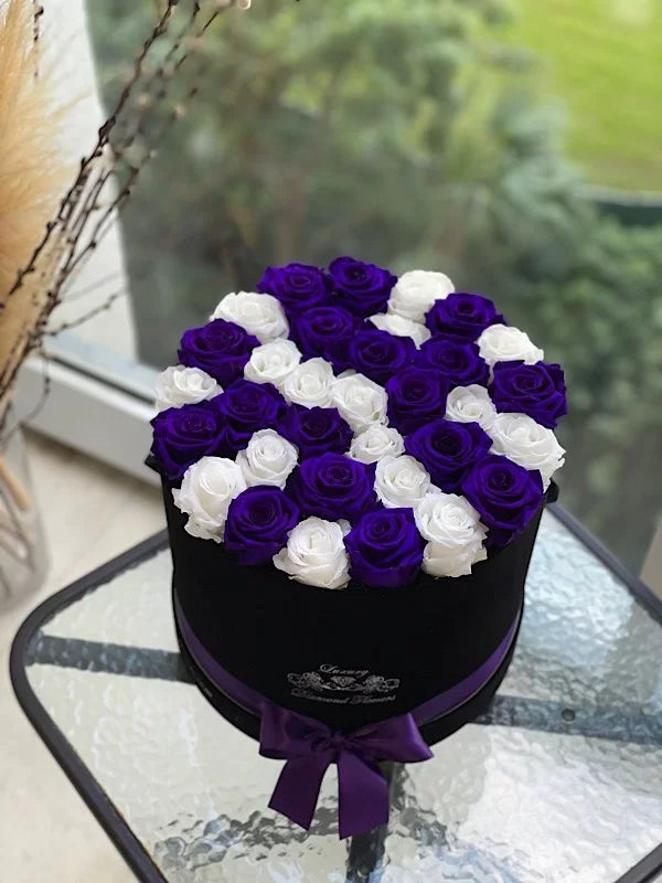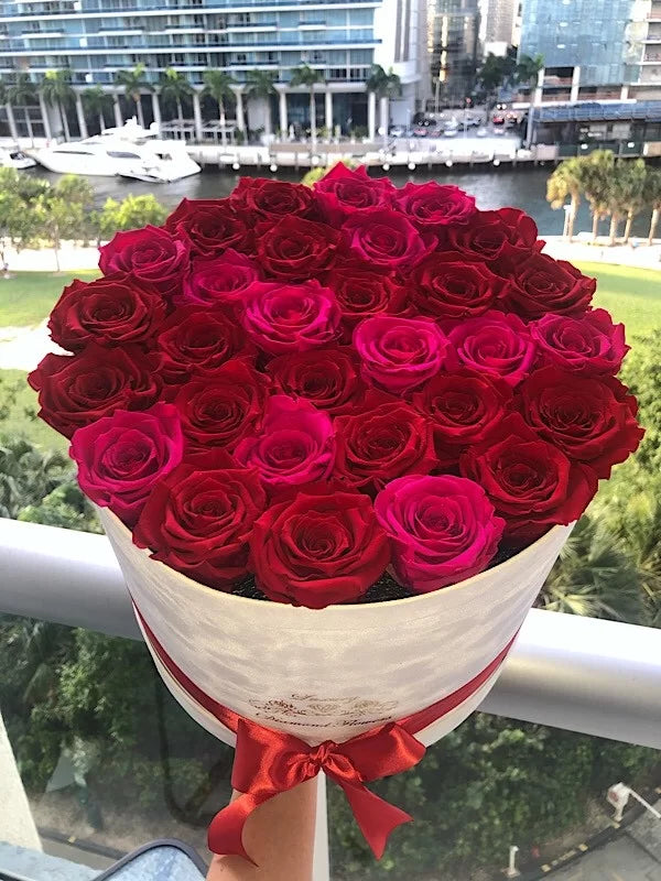 Up to 40 forever roses that last years mix of 2 colors you want in round box. Available best roses Brickell for same day delivery in Miami and South Florida.