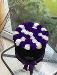 Up to 40 forever roses 2 different color last years in round linen box. Please choose roses color