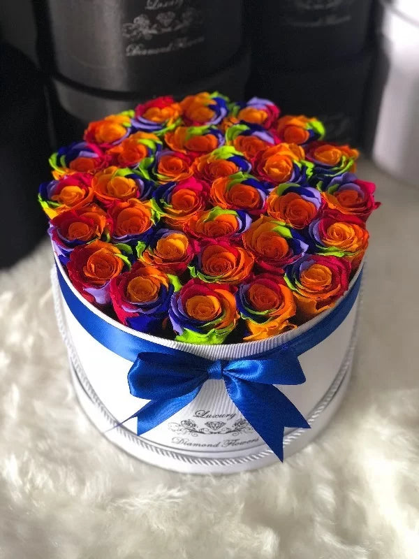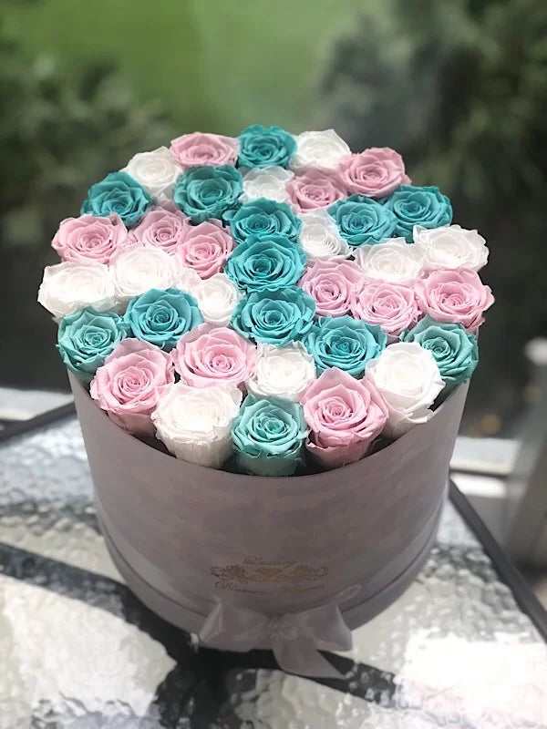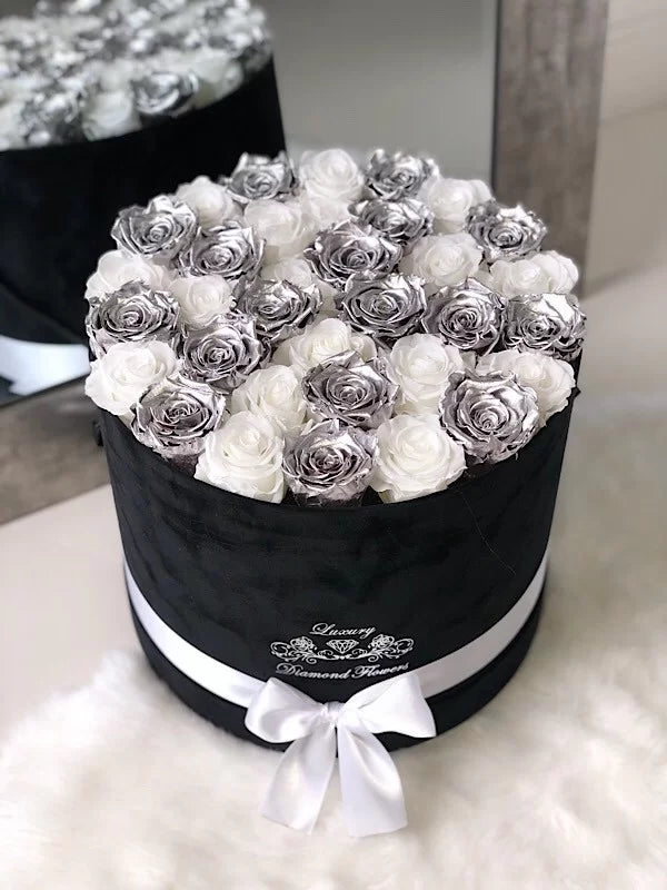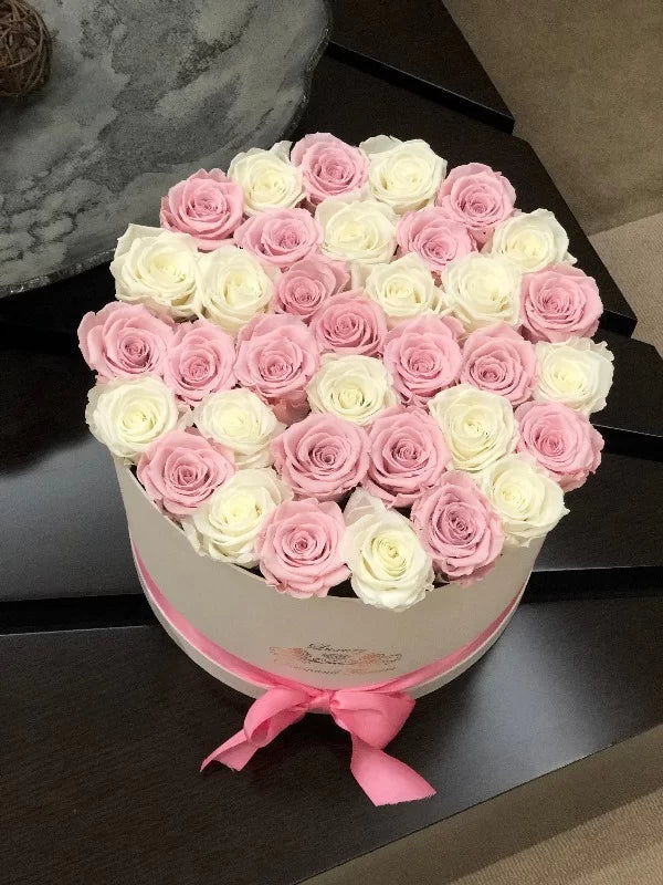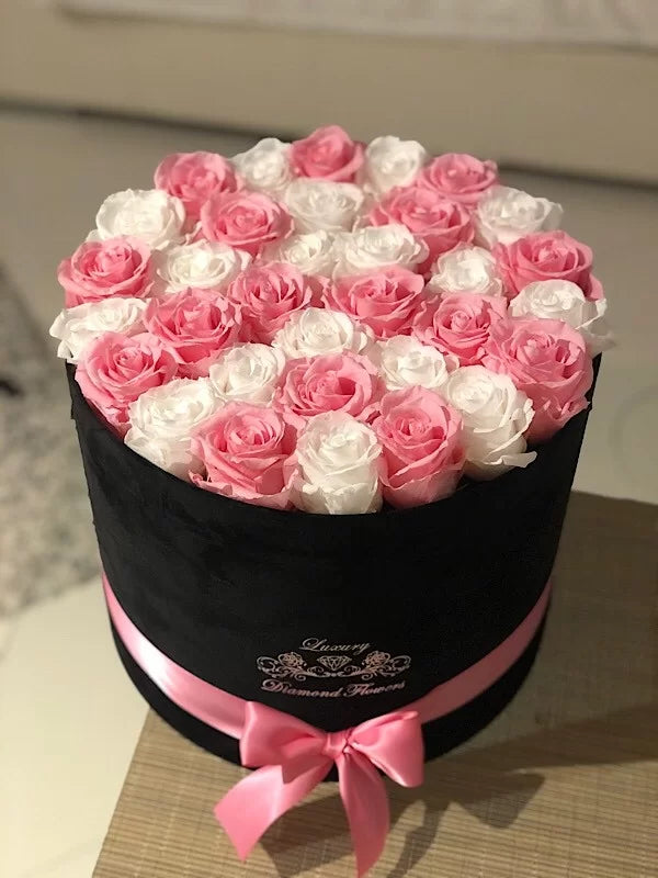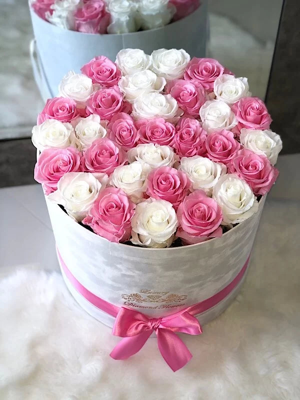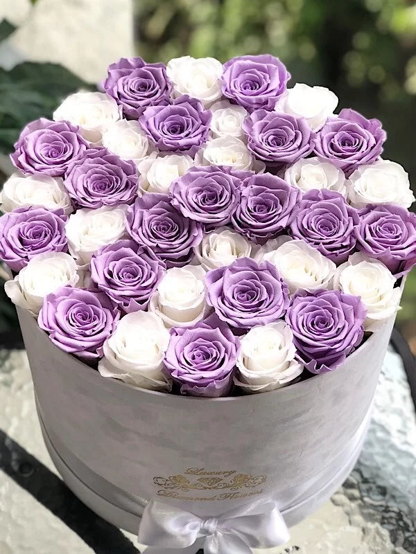 Up to 40 forever roses that last years mix of 2 colors you want in round box. Available best roses Brickell for same day delivery in Miami and South Florida.