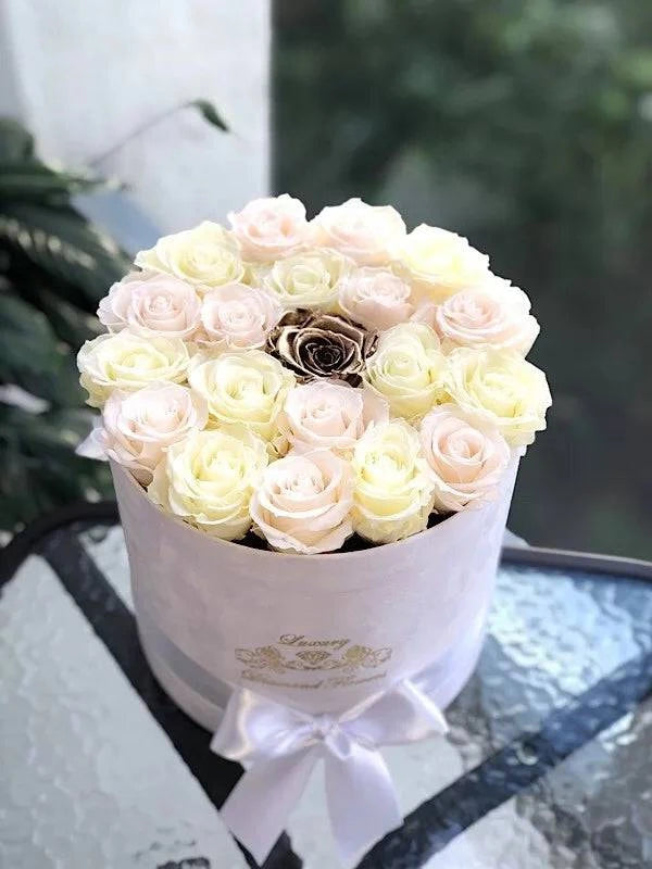 Up to 19 roses last years with 1 gold rose in round box. Please choose roses color!