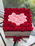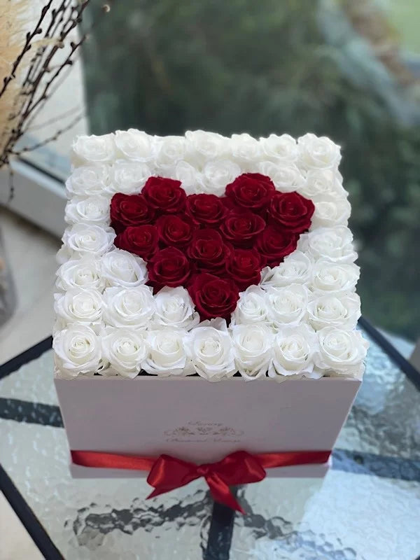 The method of preserving roses essentially halts the aging process and prevents the roses from wilting. The heart roses maintain their freshness and flexibility, as if they were freshly cut. Essential care tips for preserved roses They don’t need water or sunlight. To keep your eternal roses looking their best, keep them in a cool, dry place away from direct sunlight, excessive heat, and high humidity. Avoid touching the roses too often as oils from the skin can affect their color and texture. If dust accumulates on the roses, gently clean them with a dry, soft brush.